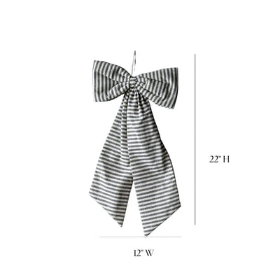 Striped Dark Charcoal Fabric Bow - Large